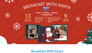 Breakfast, coffee, hot chocolate, fun Christmas activites, and a photo with Santa included with ticket!