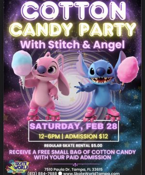 COTTON CANDY PARTY WITH STITCH & ANGEL! Get ready for a sugar-sweet skating day full of fun and smiles! Join us ...