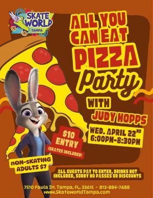 Judy Hopps is joining our Pizza Party Wednesdays! Get your cameras ready to get a photo with everyone's favorite bunny ...